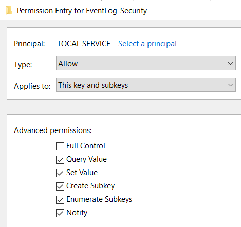 So Local Service try to Read/Write to this Key, let see what are the permissions after January patches